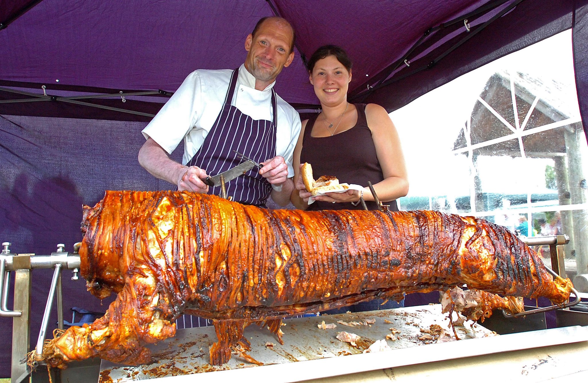 A LITTLE SQUEAL ABOUT US... After several years working in Rosette and Michelin Star establishments I have decided to leave the kitchen and put my expertise into setting up a family run Hog Roast business with my Wife. We can cater for corporate events, weddings, fairs, fetes or even as an alternative at a family get together. We are able to cater for all sizes; large joints will do upto 60 people, a 3/4 pig will serve between 60 - 100 guests and a full pig that can do up to 160 guests. Please note that the number of people will vary slightly depending on the package that you go for and if numbers exceed 160 then we can still help as we do have multiple machines. If you do not want a hog roast then that is not a problem, we can also offer BBQ packages, so be sure to ask about them. We understand that everyones needs are different and we can cater to meet them and work within your budget. Where possible we use all locally sourced produce and all our pigs are cooked from fresh on site ready to be carved at your required time. So please take the time to browse our site and see what we have to offer and don't hesitate to get in touch with any questions you may have; we will be more than happy to help. We can guarantee you will NOT be dissapointed. |